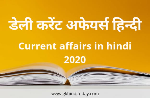 Current affairs hindi today question answer नमस्कार दोस्तों gkhinditoday में आपका स्वागत है।daily current affairs hindi September 2020 महत्वूर्ण प्रश्न पढ़ने को मिलेगे जिसमे अंतरराष्ट्रीय स्तर की खबर, राष्ट्रीय स्तर की खबर,राजकीय खबर,खेल जगत जैसे खबर पढ़ने को मिलेगी ssc,rrb,banking,upsc सभी सरकारी एग्जाम में useful है।
