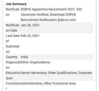 DSRVS Apprentice Recruitment 2021 Notification Vacancy Details