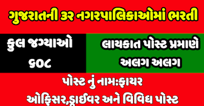 Gujarat 32 Nagarpalika Published Advertisement For 608 Driver/Fireman Posts.Eligible Candidates,Who Aspire To Join Gujarat Nagarpalika a above Posts,Are Required Send Their Documents After Carefully Reading The Advertisement Regarding The Selection Process,Eligibility Criteria,Online Registration Processes,Payment Of Prescribed Application