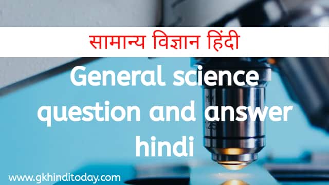 हेल्लो दोस्तों gkhinditoday में आपका स्वागत है आज आपको इस पोस्ट में general science question in hindi के महत्त्वपूर्ण प्रश्नों पढ़ने को मिलेगे जो आपको सभी तरह की सरकारी परीक्षा में उपयोगी होगे।